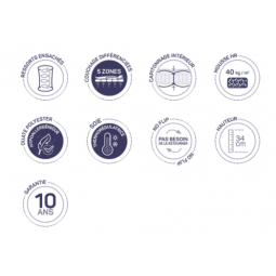 Derrière son velours d’exception, au toucher délicat, différentes nappes de mousse Natureva s’associent à une suspension ensachée zonée et vous offre un accueil douillet, parfaitement équilibré.